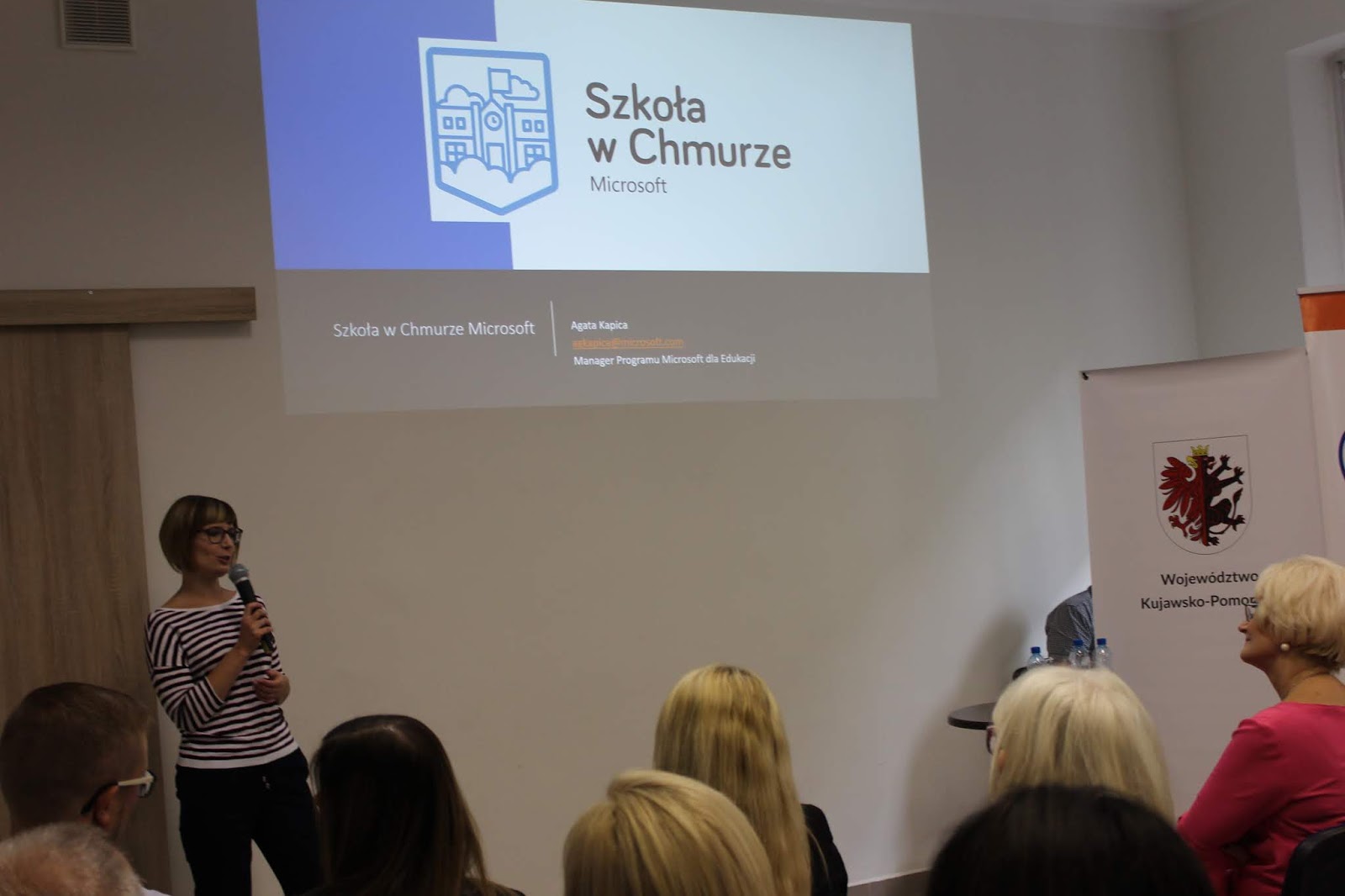 Zespół Microsoft reprezentowało dwoje bardzo sympatycznych i energetycznych prelegentów: Agata Kapica i Artur Rudnicki, na co dzień nauczyciel informatyki i wicedyrektor Zespołu Szkół Technicznych im. Tadeusza Kościuszki w Radomiu. Ich wystąpienia zmotywowały niemal wszystkich słuchaczy do wykorzystywania w szkole technologii chmury oraz projektów, programów i platformy społecznościowej przygotowanej dla szkół przez Microsoft.